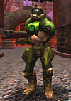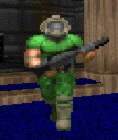 bewaffnet. Er sagt immer noch "Doom und Quake!"